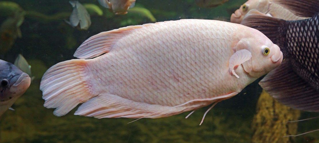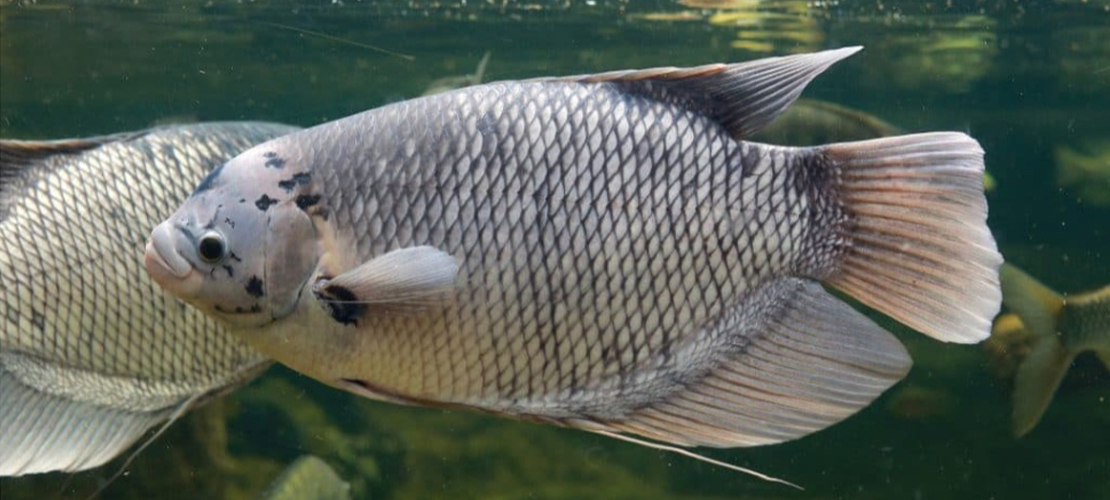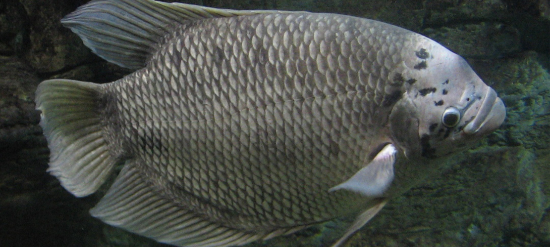 The Giant Gourami (Osphronemus goramy) is the largest gourami species, sometimes called the True or Common Gourami. Their name is not a lie; the Giant Gourami is truly a giant in the aquarium size. Its massive size means that it is not an option for many hobby aquarists. Despite their huge and impressive size, some at-home aquarists want to try their luck with owning one. If that sounds like you, read on for more information about the behemoth that is the Giant Gourami. The Giant Gourami is known for its massive size; it can reach a whopping 18 inches in length. That gigantic size means they need to be housed in a tank that can accommodate them; on average most aquarists recommend a tank size of at least 200 gallons. It is easy to identify a Giant Gourami by its pointed snout and flathead. Their bodies tend to be yellow with silver or grey stripes, although those stripes fade as they mature. In the wild, Giant Gouramis can typically be found in Thailand, Vietnam, Borneo, India, Singapore, and several other places in Asia.
